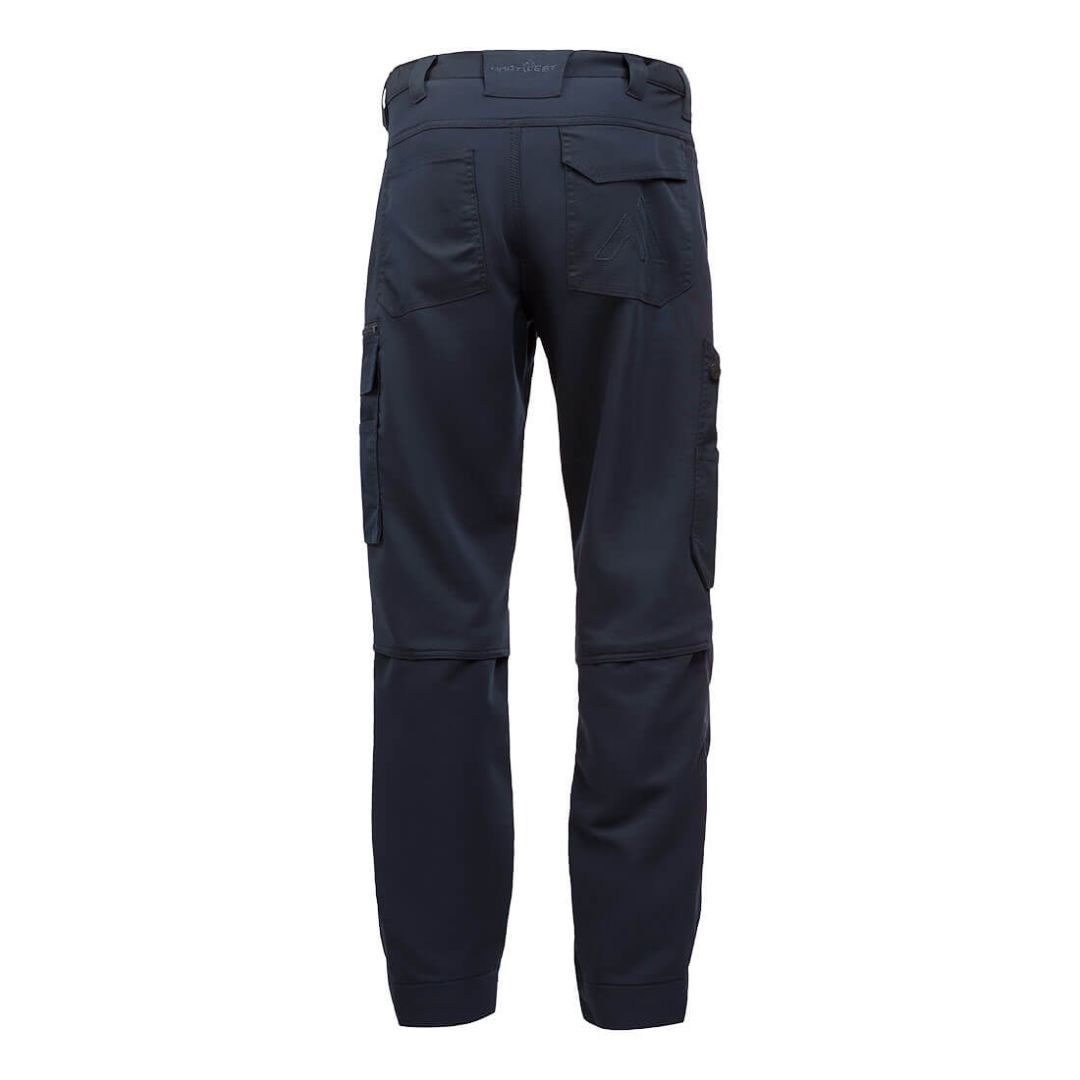 A DX4 Trade nadrág ergonómiailag tervezett, stratégiailag elhelyezett dinamikus 4X stretch szövetekkel a maximális mobilitás érdekében munka közben. Magasan felhúzott hátsó derékpánttal rendelkezik, oldalsó elasztikával, amely minden helyzetben további védelmet nyújt. Az előre behajlított, felülről tölthető, állítható térdpárnazsebek, a tágas elülső zsebek és a többfunkciós cipzáras combzsebek biztonságos tárolást biztosítanak a telefonoknak, tollaknak és szerszámoknak. A háromszoros varrással megerősített nadrág kivételes tartósságot biztosít. Jellemzők: 4-utas sztreccs anyag a könnyű mozgás és a fokozott kényelem érdekében és 8 zseb a bőséges tárolásért. 2 oldalzseb, 2 hátsó zseb, egy nyitott és egy patentos zseb.1 combzseb cipzárral, 1 telefonzseb, 1 kalapácshurok, 1 kulcszseb, 1 tolltartó zseb.Felülről tölthető térdvédő zseb a gyors és könnyű hozzáférésért. Két szintes térdvédő zseb, mely kétféle elhelyezési lehetőséget biztosít. Több oldalsó cipzáras rekesz a biztonságos tároláshoz. Kalapácshurok a munkaeszközök biztonságos tárolásához. Oldalsó elasztikus derékrész a maximális viselési kényelem érdekében. Előre behajlított térdek a nagyobb mozgásszabadságért. Állítható szegély - normál és hosszú lábszár között. Magasan emelkedő hátsó derékpánt biztosítja a védelmet minden munkapozícióban. Lábszárfodor a terhelés csökkentése és a varrás meghibásodásának megelőzése érdekében.