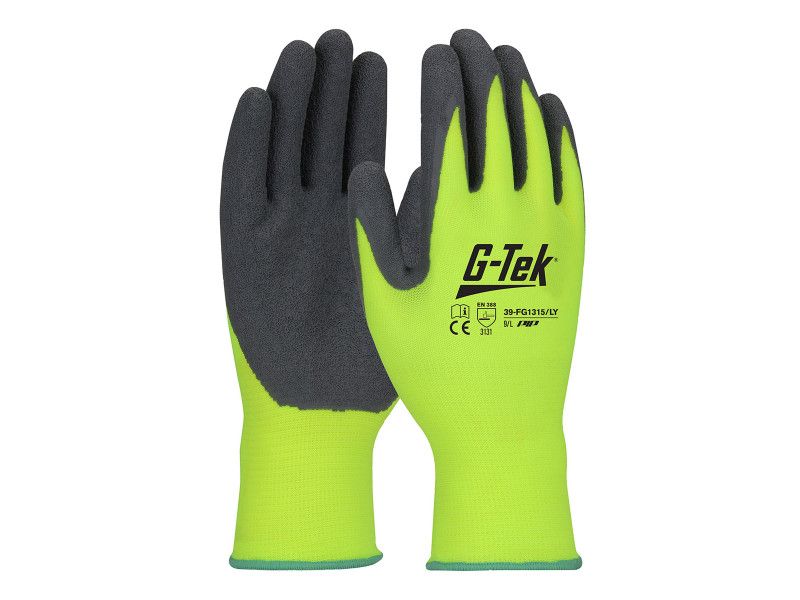 GTEK-39-FG1315/LY-10 - G-TEK nylon, latex tenyérmártott jól láthatósági munkavédelmi kesztyű