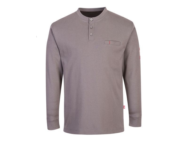 Ez a felső alapvető védelmet nyújt a hő és a láng, az elektromos ív és az antisztatika ellen, így a munkavállalók biztonságban és kényelemben dolgozhatnak a munkahelyen. A puha, háromgombos záróvonal finom szövetes kontrasztot ad egy olyan ruhadarabhoz, amelyet könnyű rétegezni, és önmagában is jól néz ki. Védelmet nyújt sugárzó, konvektív és kontakt hő ellen, A nedvesség elvezető szövet segít melegen tartani viselője testét, száraz, hűvös helyen, Rejtett mellzseb, Ujjzseb, Gombos záródás, Lángálló bordázott mandzsetta a biztonság fokozása érdekében, FR aramid szál az extra tartósságért és a védelemért, ARC2, 2 zseb a biztonságos tárolás érdekében, 40+ UPF minősítésű alapanyag, amely az UV-sugarak 98%-át blokkolja., CE-CAT III, CE minősítés, Új modell
