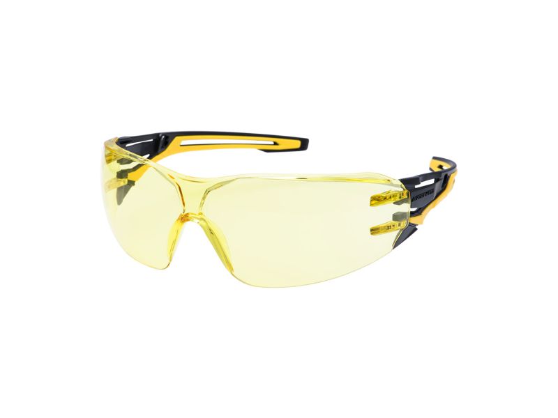 A panorámás kilátásért wrap-around stílussal, stílusos és egyedi dizájnnal, befecskendezett, kétszínű és rendkívül rugalmas szárakkal, kivételesen jó, univerzális illeszkedéssel, puha gumírozott szárvégekkel, formázott orr-résszel, karcolásgátló és párásodásgátló bevonattal, UV védelemmel, kisker kihelyezést segítő csomagolással, automatákhoz egyedi csomagolással és CE minősítéssel rendelkező könnyű védőszemüveg, amely 100% fémmentes.